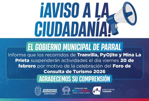 Gobierno de Parral suspenderá temporalmente servicios turísticos este viernes por actividades institucionale –Autoridades municipales agradecen la comprensión de la ciudadanía ... -