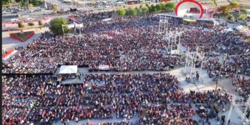 Ciudad Juárez, Chihuahua.– Ante una multitud de más de 50 mil personas reunidas en la Plaza de ... -
