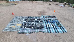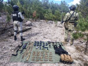 Guardia Nacional y Ejército Mexicano aseguran armamento en los límites de los estados de Chihuahua y Sinaloa.