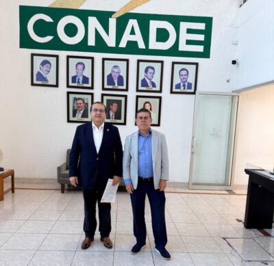 Alcalde Salvador Calderón gestiona solución legal sobre el Polideportivo ante CONADE -Durante gira en la ... -